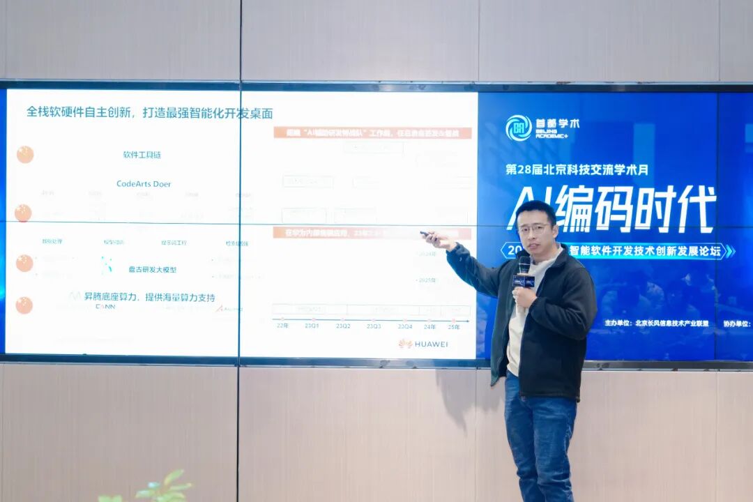 为把脉人工智能浪潮下北京软件行业的发展趋势与机遇挑战,11月28日,由北京市科学技术协会指导,北京长风信息技术产业联盟主办的——2025年人工智能软件开发技术创新发展论坛在E_ZIKOO智慧谷展示中心成功举办。作为第28届北京科技交流学术月的系列活动,本场通过“线下+线上”联动的方式,构筑起一个开放的思想交流平台,累计吸引超千名业界同仁云端相聚。中科院计算所副教授李明宇、开源中国Gitee产品总监丁智、华为云北京云解决方案专家刘伟、CSDN搜推及AI技术负责人王品、中科软科技股份有限公司技术总监张正等行业专家轮番登场,从AI编程行业现状、个人研发经验及市场应用观察等角度进行报告研讨。