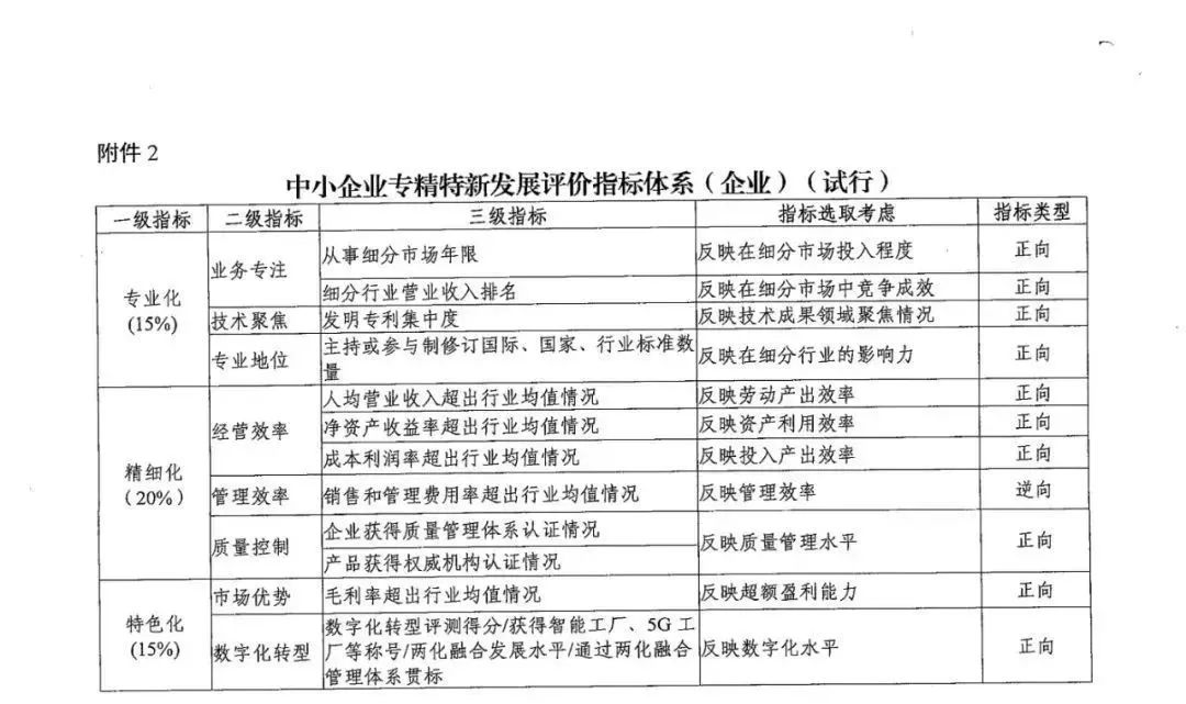 工信部印发《中小企业专精特新发展评价指标体系(试行)》
